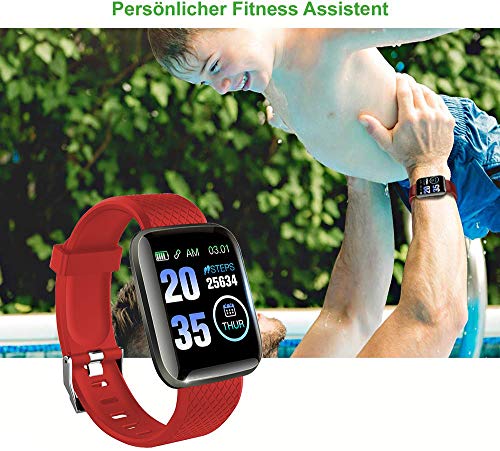 Optimale Sportuhr: Dank ihrer Vielzahl an Sportfunktionen dient die Fitnessuhr als praktischer Begleiter für sportliche Aktivitäten. Das Armband aus Silikon passt sich perfekt an Ihr Handgelenk an und sorgt für mehr Komfort und Halt beim Tragen. Außerdem ist der Aktivitätstracker wasserdicht, weshalb er sich besonders gut für für Outdoor Sport eignet.